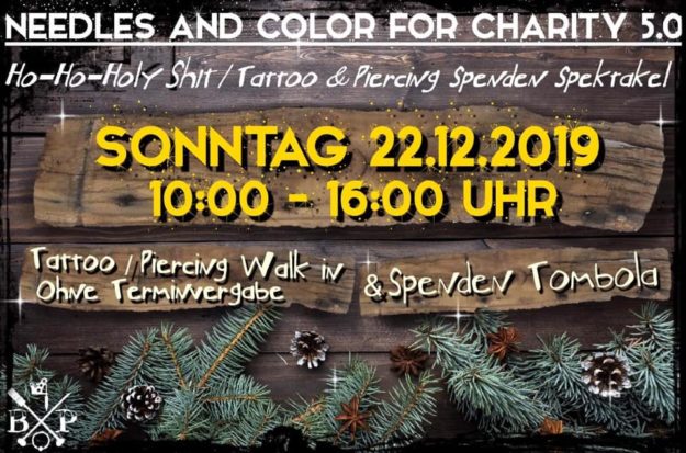 „Alle Jahre wieder“! Am 22.12. findet ab 10Uhr unser 5. Tattoo & Piercing Spenden Walk In „HO-HO-HOly Shit – Tattoo & Piercing Spenden Spektakel“ statt. Das bedeutet, ihr könnt euch ohne vorherige Anmeldung kleine Motive (ca 4 x 6 cm) stechen lassen. Die Einnahmen kommen, genau wie das Geld der vor Ort gestochenen Piercings, in…